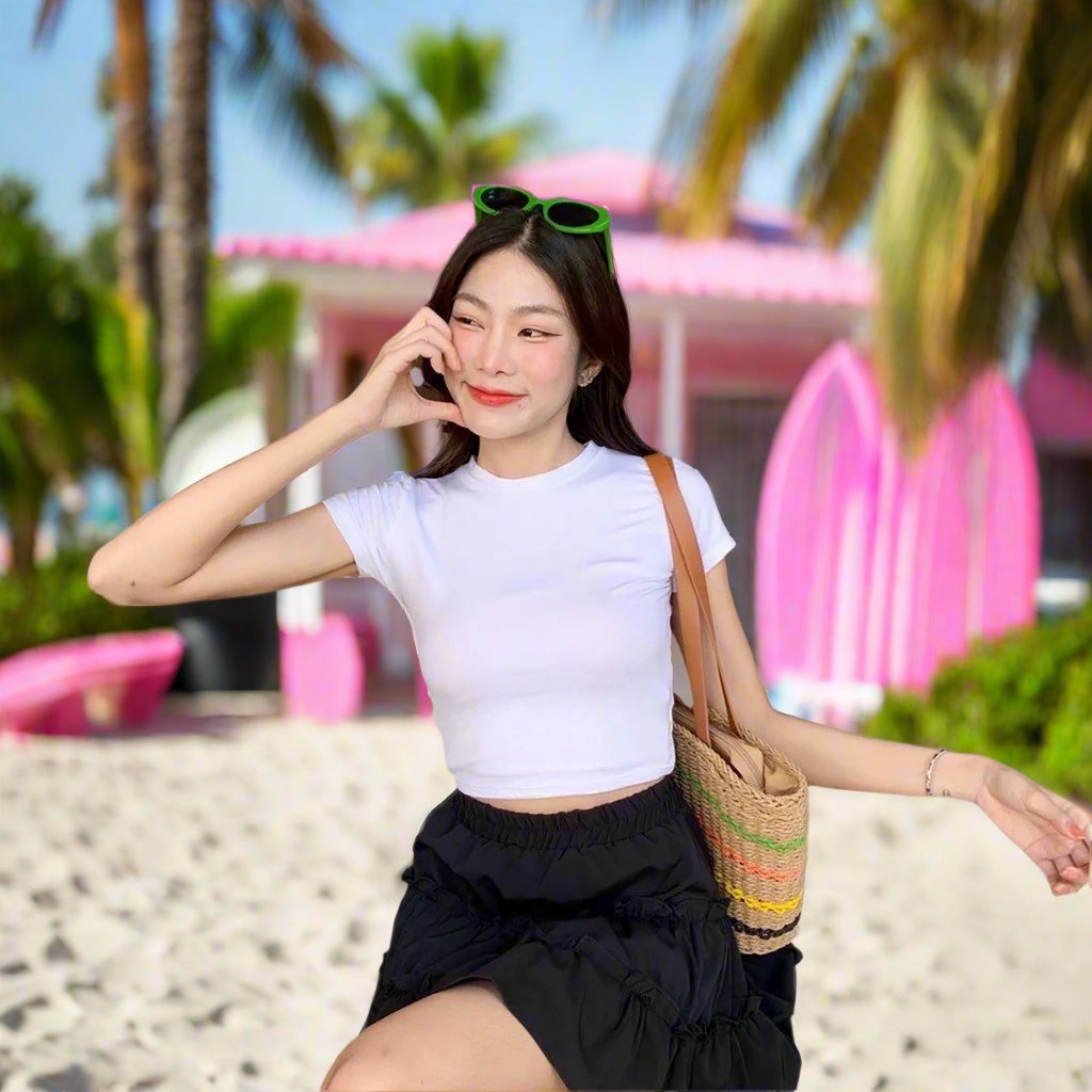 Get ready for fashion and comfort with this cute Baby Tee! Featuring a round neck and a cropped style, it's made from soft rayon fabric that looks amazing with a high waist. Show off some skin and add a touch of sensuality by pairing it with a low waist, or effortlessly match it with any outfit. A must-have addition to your wardrobe!