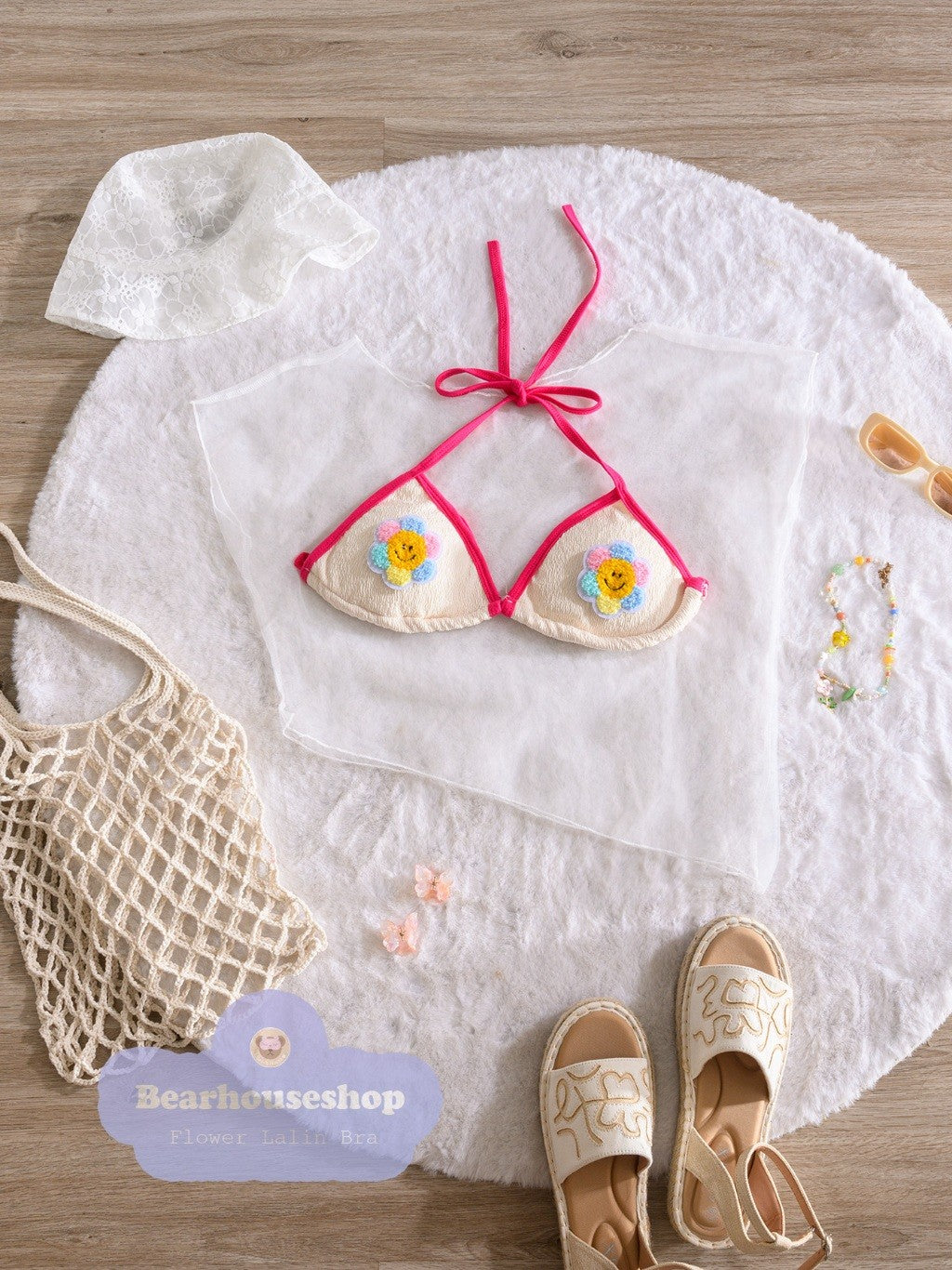 This bra is as unique as you are, with flower embroidery and a mesh top. Its adjustable details and padding offer comfort and support. Pair it with shorts and make a statement this summer. 🌸🌞