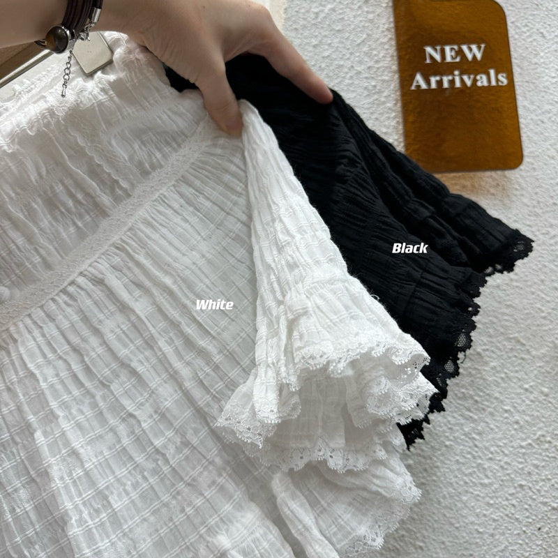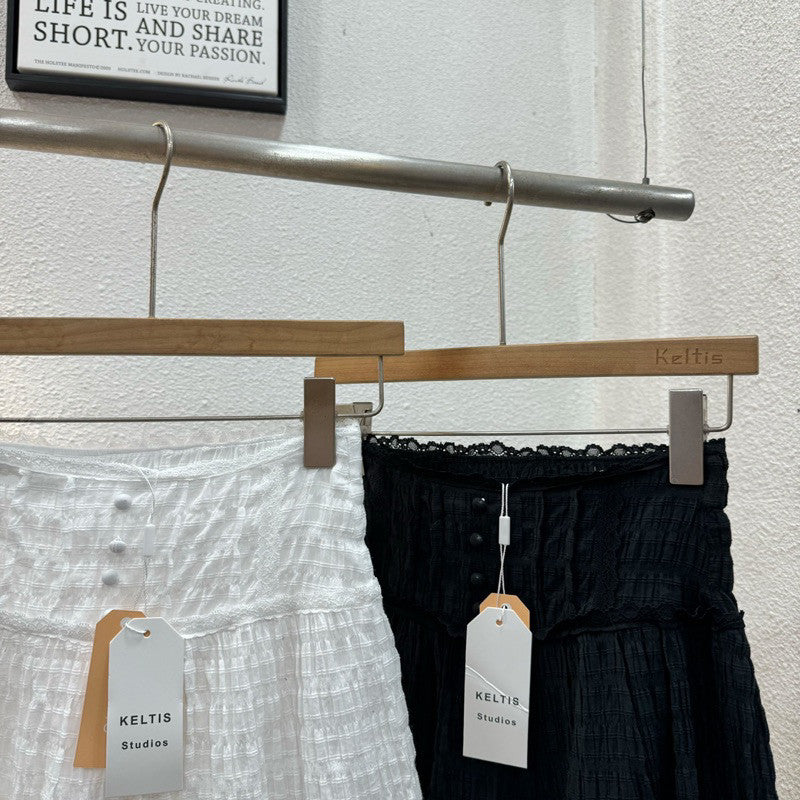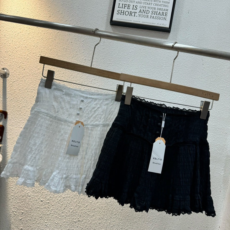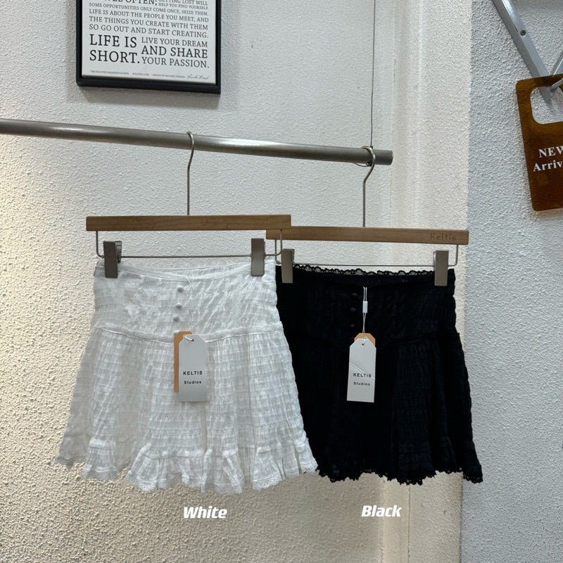 This Popcorn Skirt is a playful addition to any wardrobe! The lace and label work adds a touch of charm, while the front button decoration and back smock waist detail provide a comfortable fit. Complete with a side zipper and easy-to-wear style, this skirt can be paired with any crop top for a fun and versatile look!